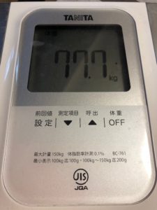 体重 | 77.7 | 76.8 | 76.1 | 76.7 | 75.5 | 74.2 | 74.5 |