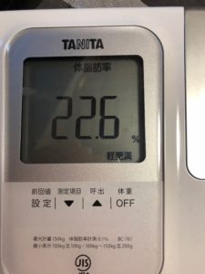 体脂肪率 | 22.6 | 22.5 | 21 | 21.5 | 21.8 | 20.8 | 20 |
