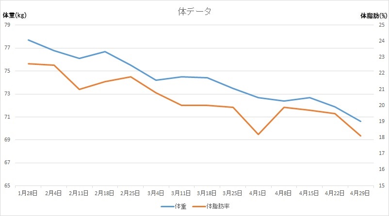 そして、3ヶ月後の4月末の体データが以下です。
